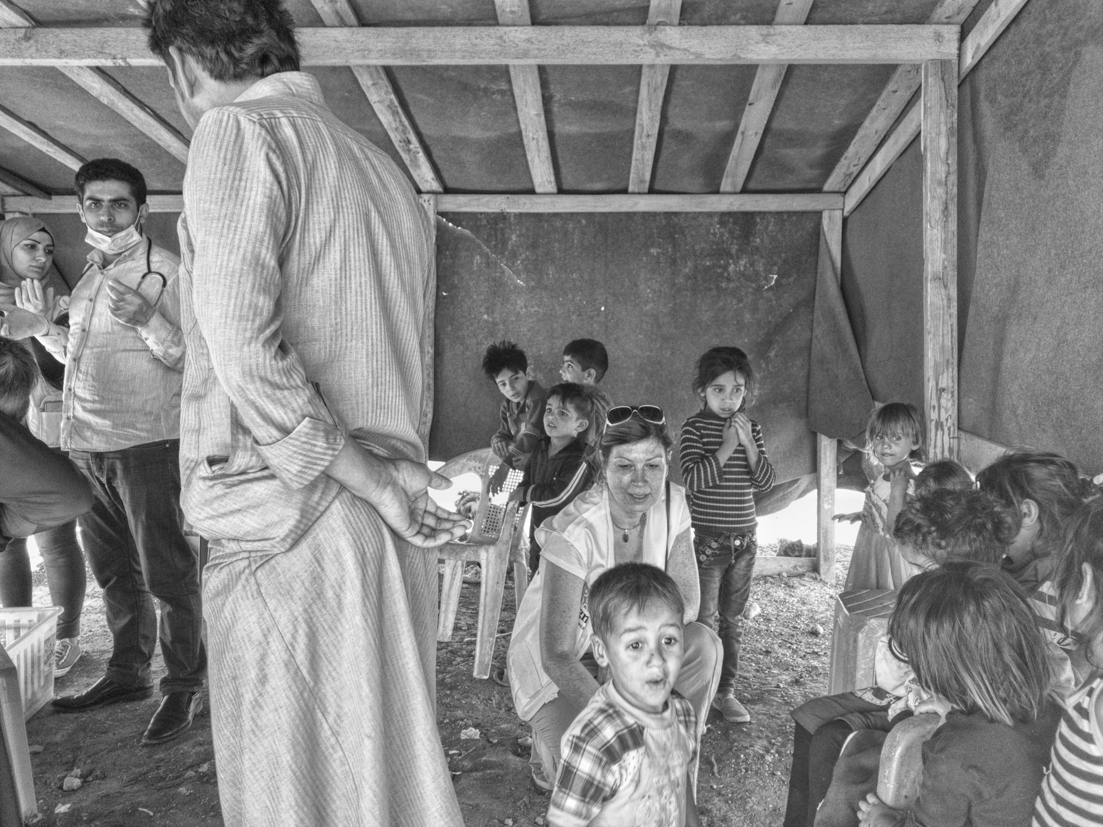 Mohamed je v MAGNA zdravotnom centre hlavný lekár, je to príjemný, veľmi milý človek. Hovorí krásnou mäkkou angličtinou a ešte kvetnatejšou ruštinou, študoval totiž v Kyjeve, kde sa mu páčilo a rád na svoje štúdia spomína. Opravuje veľmi milo moju kostrbatú ruštinu, ktorú ťahám ešte z dôb základnej školy a veľmi nás to baví cestou do prvého tábora za sýrskymi deťmi. Akonáhle vystúpi z auta, on a jeho zdravotnícky tím, ktorý tvorí usmievavá psychologička a sestrička, začnú sa sústrediť a pripravujú sa na svoju prácu. V prístrešku uprostred tábora vzniká behom chvíľky ordinácia. Deti z provizórnych prístreškov vybiehajú, sú zvedavé. Prizerajú sa a pokukujú. V nasledujúcich pár minútach prichádzajú maminky s chorými deťmi v náručí. Tlačia sa. Mohamedova sestrička ich vľúdne zoradí do rady a postupne si zapisuje meno a vek dieťaťa. Maminky sa tlačia, rozprávajú sa a húf detí sa medzi nimi prepletá až k pánovi doktorovi. Chcú všetko vidieť, počuť a proste byť pri všetkom. Mohamed sa usmieva, na každé dieťa sa milo pozrie a sýrskou arabčinou na neho prehovorí. Behom chvíľky si takto každé dieťa získa na svoju stranu a môže ho veľmi rýchle vyšetriť. Húf malých detí sa opäť tlačí a chce vidieť, čo sa deje. Ukazujú svoje ruky a nohy, chcú tiež získať pozornosť pána doktora. Každú chvíľku pán doktor zdvihne hlavu od svojho pacienta a prehovorí k ostatným deťom, tie sa ukľudnia a prizerajú sa ďalej. Novorodenci, nechodiace deti majú v náručí maminky, s väčšími prichádzajú aj otcovia. V očiach majú všetci starosť. Bronchitída, ekzémy, angíny, hnačky sú najčastejšie ťažkosti detí. Po ošetrení 70 pacientov Mohamed s úsmevom vyhlasuje 5 minút prestávku, sadne si na plastovú stoličku a rozpráva sa s deťmi. Vysvetľuje mi, aké ťažkosti nastávajú u detí v takomto prostredí najčastejšie. Ťažšie prípady, kde len dávky liekov nepomôžu, si pozýva k sebe do MAGNA ordinácie do mesta, alebo sa s rodičmi rovno dohodne na návšteve špecializovaného zdravotníckeho centra či nemocnice. Na čele mu nabehla vráska, v 40 stupňoch je vidieť, že je trochu unavený. Vstáva, dav pred ním je stále rovnako dlhý len obsadenie sa zľahka mení, poväčšine prišli nastávajúce maminky. Sestrička zapisuje ich mená, vek, koľké tehotenstvo práve prebieha a koľko detí majú. Paní psychologička s nimi preberie ich ťažkosti, informuje pána doktora a ten následne začína so svojou diagnózou a možnosťami, ako tehotnej žene pomôcť. Veľmi diskrétne, ako len to je v týchto podmienkach možné, Mohamed navrhne riešenie a prípadnú liečbu. Húf malých detí je stále v pohybe a poskakuje okolo každého pacienta. Dospievajúce deti prichádzajú postupne z práce a bežia sa postaviť do rady. Majú rôzne problémy najviac s ekzémami na rukách a nohách, s dýchaním a niektoré sa potrebujú len porozprávať. Rada sa už zmenšila. Prišlo aj niekoľko starších žien, ktoré sú chronicky choré a potrebujú špeciálne lieky. Sestrička si každú zapíše a pán doktor im zmeria tlak, zistí ich stav a vydá lieky. Keď daný liek nemá pri sebe, dohodnú sa, že im ho prinesie pri ďalšej návšteve. Po vyčerpávajúcich 3 hodinách si MAGNA zdravotnícky tím všetko zabalí, opúšťa provizórny tábor a pokračuje o pár kilometrov ďalej. 3 dni v týždni vyráža MAGNA mobilná klinika do provizórnych táborov v okolí mesta Baalbeck.