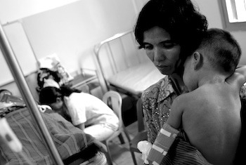 Horečku dengue přenáší komáři a letos zasáhla Kambodžu dříve než v minulosti. Denně máme na lůžkovém oddělení okolo 40 dětí, jimž zajišťujeme bezprostřední lékařskou péči. Pro oddělení jsme zajistili hematocryt a průběžně dodáváme infuze, injekční stříkačky a antibiotika. Také díky Magna Děti v tísni v současnosti dokáže pediatrické oddělení Chey Chumneas nemocnice v Takhmao poskytnout kvalitnější lékařské ošetření.