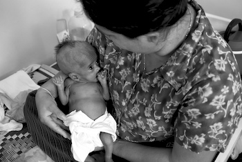 Dítě ve stádiu těžké podvýživy a s AIDS léčené v rámci programu Magna Děti v tísni v Chey Chumneas nemocnici v Takhmao. © Martin Bandžák