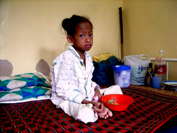 Jedním z míst, kde takové vzdělávání probíhá a kde naši pracovníci identifikují tyto děti a problémy zapříčiněné nesprávnou výživou, je provinční nemocnice v Takhmao. Na základě doporučení lékaře se základním měřením určí stupeň podvýživy. Pacient je zařazen do nutričního programu, jehož hlavní část probíhá na půdě dětského oddělení.