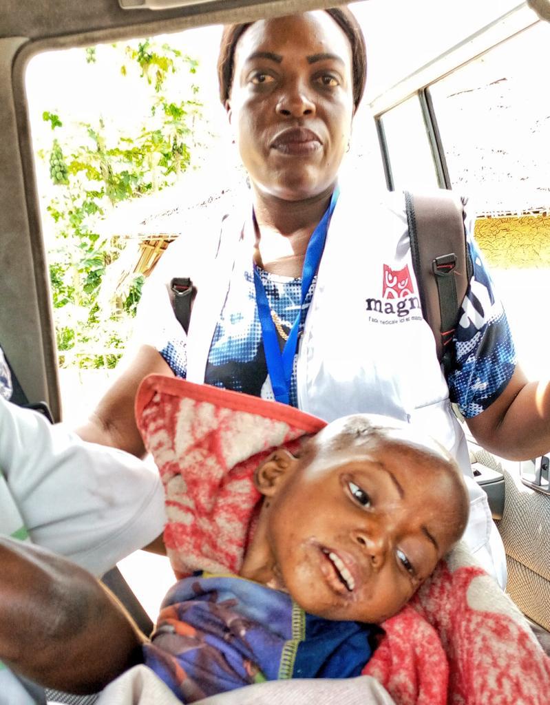 Chlapček na pokraji smrti sa volá Libono Mbili. Naša zdravotná sestra Fifi Mamputu ho s ťažkou podvýživou našla v jednej z osád, ktoré navštívila MAGNA mobilná klinika. Okamžite ho v maminom náručí previezli do stabilizačného centra, kde liečime ťažko podvýživené deti, u ktorých sa prejavili zdravotné komplikácie, ktoré pri neskorej reakcii vedú k smrti. Pre jasnejšiu predstavu, sanitka – mobilná klinika, v podmienkach neprístupných oblastí v DR Kongo nie je klasická sanitka, ako ju poznáme u nás. Je to vlastne terénne auto, v ktorom je, okrem vybavenia, liekov a zdravotníckeho materiálu, hlavne zdatný a vyškolený zdravotnícky personál, ktorý ide bližšie k pacientom. Mnohí z nich sa k pomoci nemajú ako dostať, sú vzdialení hodiny chôdze alebo plavby loďou.