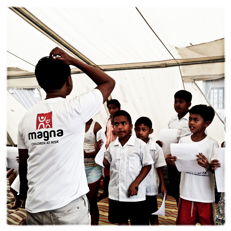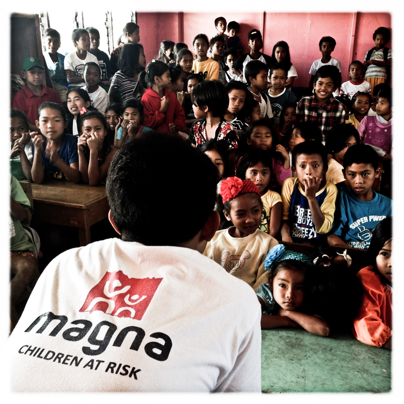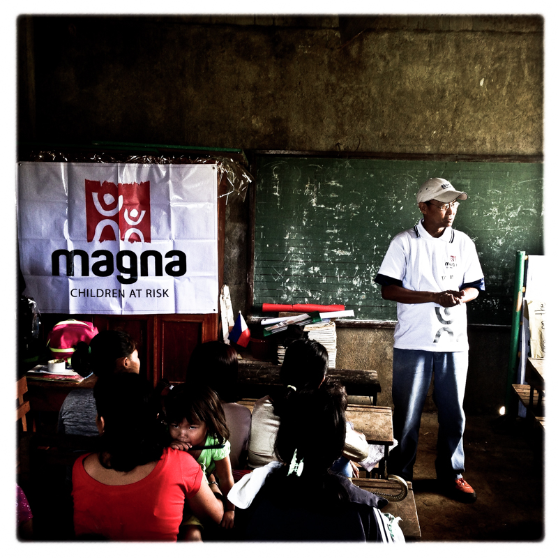MAGNA působí na Filipínách od listopadu 2013, kdy tajfun Haiyan způsobil smrt 6.300 lidem a celkově zasáhl 14 milionů lidí. 4 miliony přišlo o střechu nad hlavou. První tým MAGNA pracovníků dorazil na místo již 3 dny po katastrofě. Humanitární pomoc v prvních dnech zasáhla 15.000 lidí. Během roku MAGNA následně poskytla psychosociální pomoc pro více než 35.000 lidí v nouzi. Z toho na školách pro více než 5000 dětí různého věku v 3 prioritních oblastech (Tacloban / Palo, Ormoc area, North Cebu). V současnosti se věnujeme rekonstrukci zdravotního systému av oblasti Palo / Tacloban stavíme 2 zdravotní centra.