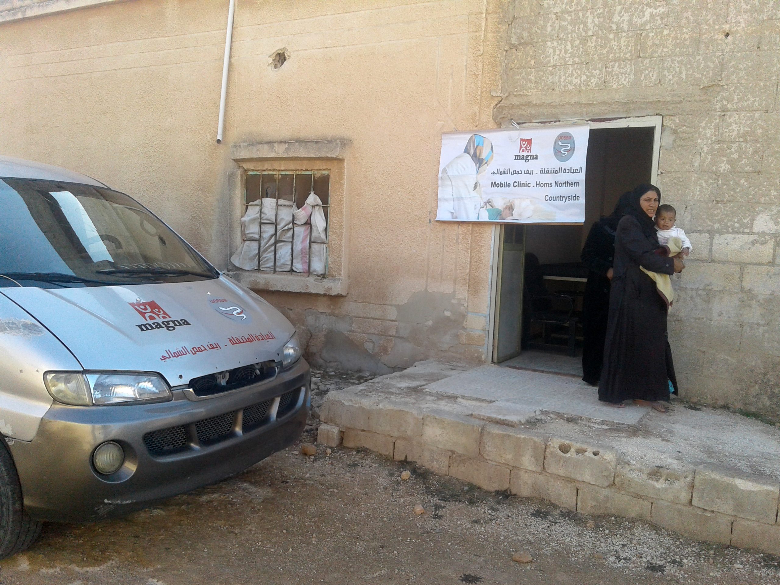 Oblasť Homs, kde žije takmer 200 tisíc vnútorne vysídlených ľudí je obklúčená a nie je možné ju opustiť a prístup k zdravontje pomoci je minimalny. Chýbajú lieky aj lekári. Situácia je neprehľadná. Miesta ostreľovania sa nedajú predvídať. Hranice obkľúčených území sa ustavične posúvajú a bezpečnejších zón v rámci týchto oblastí je stále menej. Prístup k zdravotnej starostlivosti sa zhoršuje a preto MAGNA tímy prevádzkujú okrem podpory statických nemocničných centier a traumatologickej starostlivosti, prevádzkujú mobilné kliníky a aktívne prichádzajú do postihnutých oblastí.