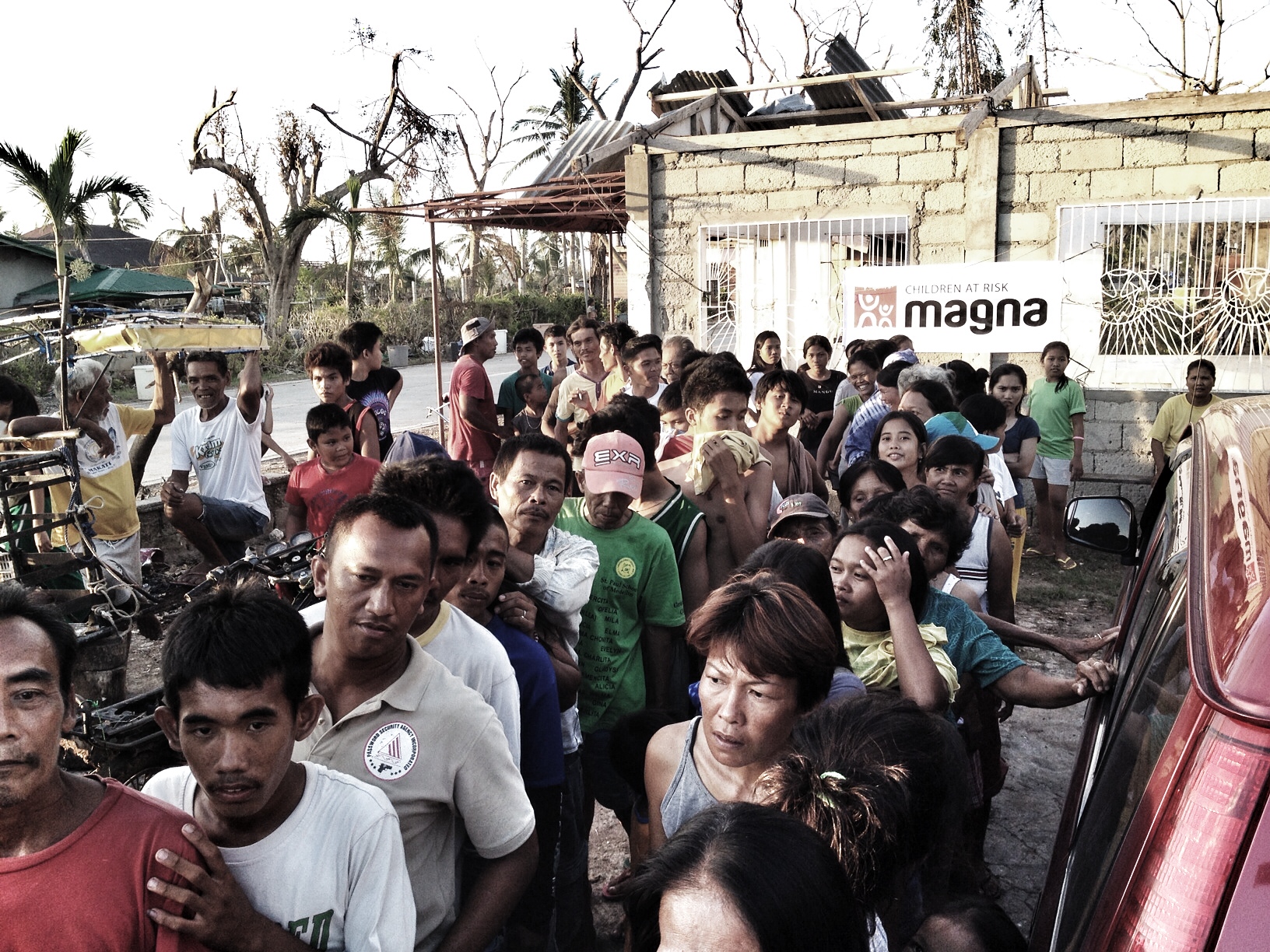 “Ľudia sú stále v šoku. Nikdy takú katastrofu v živote nevideli a neboli ani na také niečo pripravení, Nikto ich nevaroval. Vietor valcoval všetko, strechy domov lietali, prevracalo autá. K ich upokojeniu nepridávajú ani pravidelné otrasy zeme, ktoré sme zažili napríklad aj túto noc…”, hovorí MAGNA pracovník Romain Santon z Cebu na Filipínach a dodáva “Severná časť ostrova Cebu je veľmi poľnohospodárska a miestni tu žijú prevažne z predaja cukrovej trstiny a manga. Očakávali úrodu v decembri, ale teraz je všetko zničene a tým pádom prišli o ich hlavný príjem na budúci rok. Pokiaľ ide o zdravotnícke alebo psychosociálne služby tie sa tam v súčasnosti nenachádzajú žiadne.”